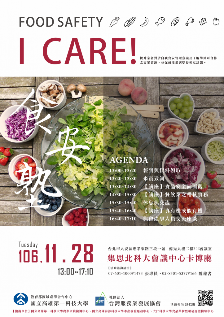 過期重製、毒雞蛋、效期塗改、違法添加物等..陳出不窮的事件,造成消費者恐慌,而為了我們廣大的業者以及消費者,服協於11月28日與高雄第一科技大學聯合舉辦11月服協會員充電會「食安塾」活動,本活動藉由產業常碰到的食安管理問題